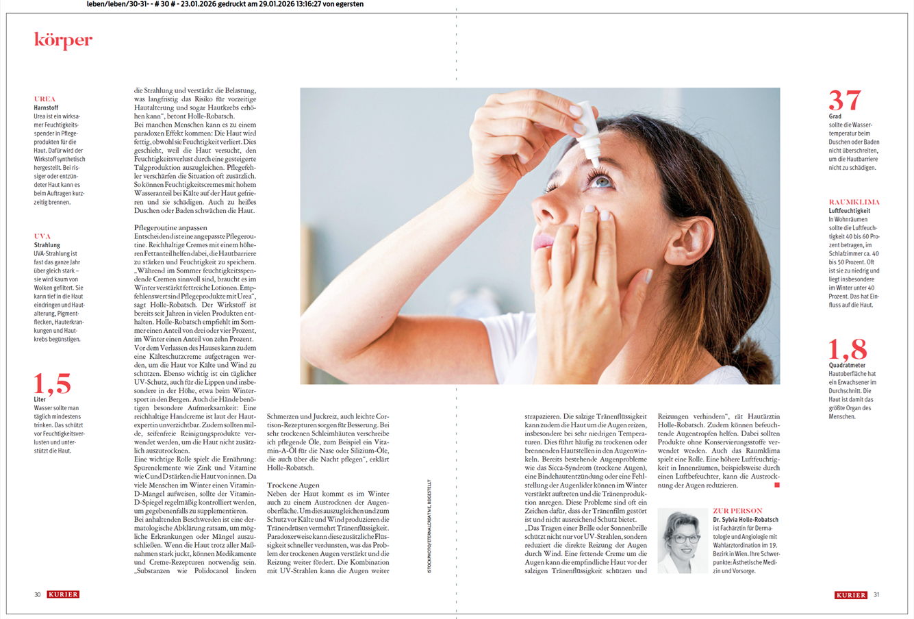 Nicht nur die Haut leidet unter trockener Heizungsluft – auch die Augen sind betroffen. Um die Augenoberfläche zu schützen, produzieren die Tränendrüsen vermehrt Tränenflüssigkeit. Diese verdunstet jedoch oft rasch, wodurch sich das Problem trockener Augen weiter verstärken kann.